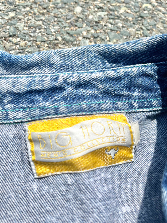 Vintage Big Horn Eagle Force Western Biker Denim Short Sleeve Button Up Shirt Men's Size Large