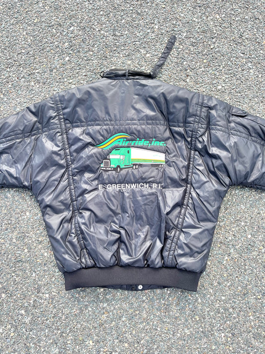 Vintage Air-Ride Inc. Trucking 90's Embroidered Tony Trucker Bomber Puffer Jacket Size L Large