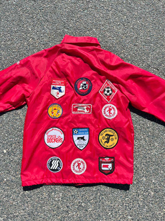 Vintage 80's Retro Massachusetts Soccer "Maureen" Patch Covered Bomber Coach Jacket Size M Medium