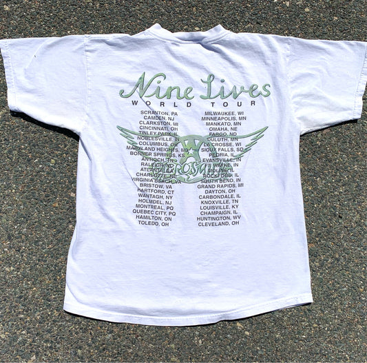 Vintage Aerosmith 90's Nine Lives World Tour Rock Band T Shirt Men's Size XL White 1997