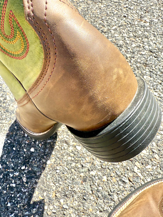 Justin Slip On Men's Leather Western Cowboy Ranch Boots Size US 12D Green
