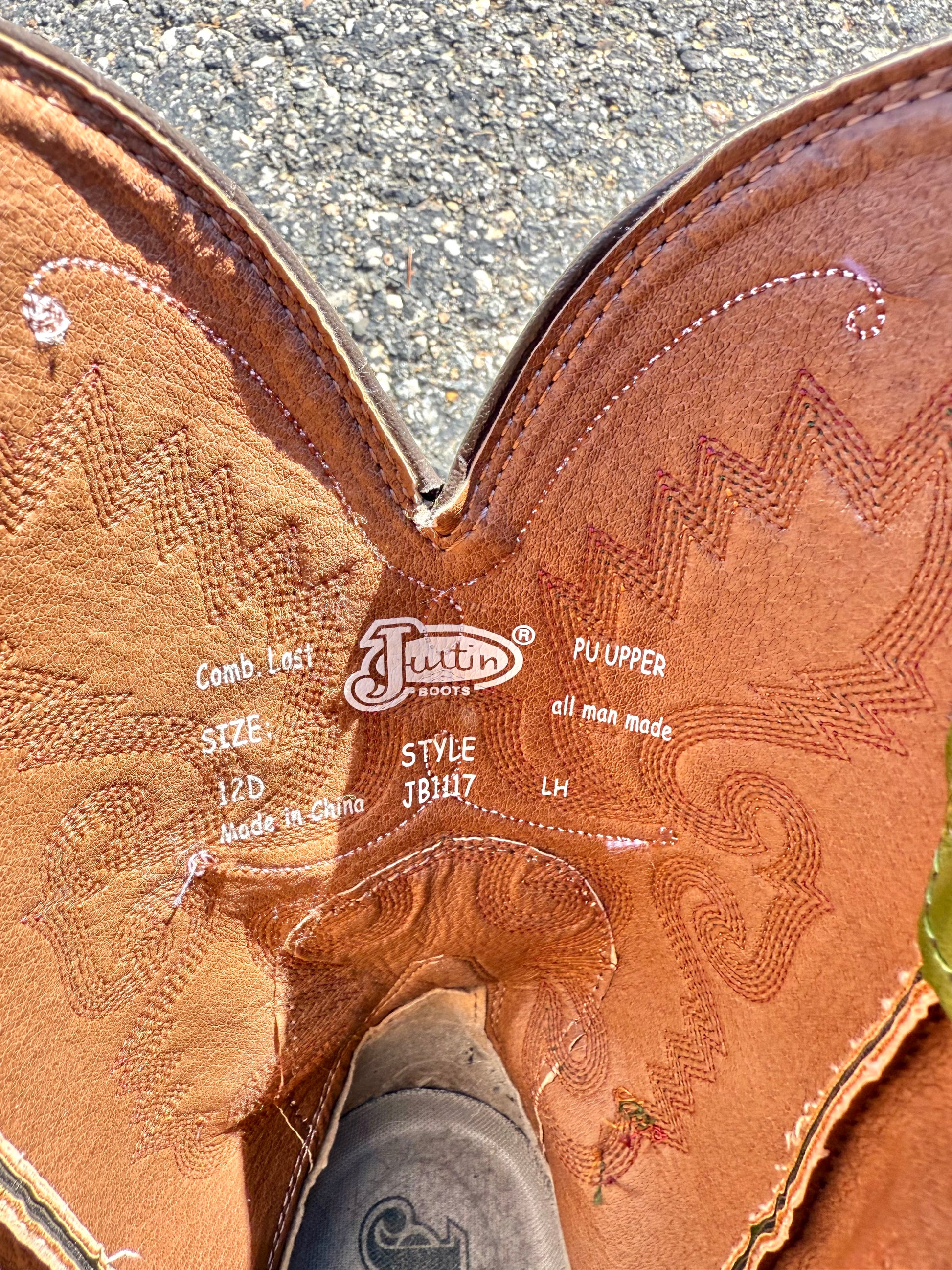 Justin Slip On Men's Leather Western Cowboy Ranch Boots Size US 12D Green