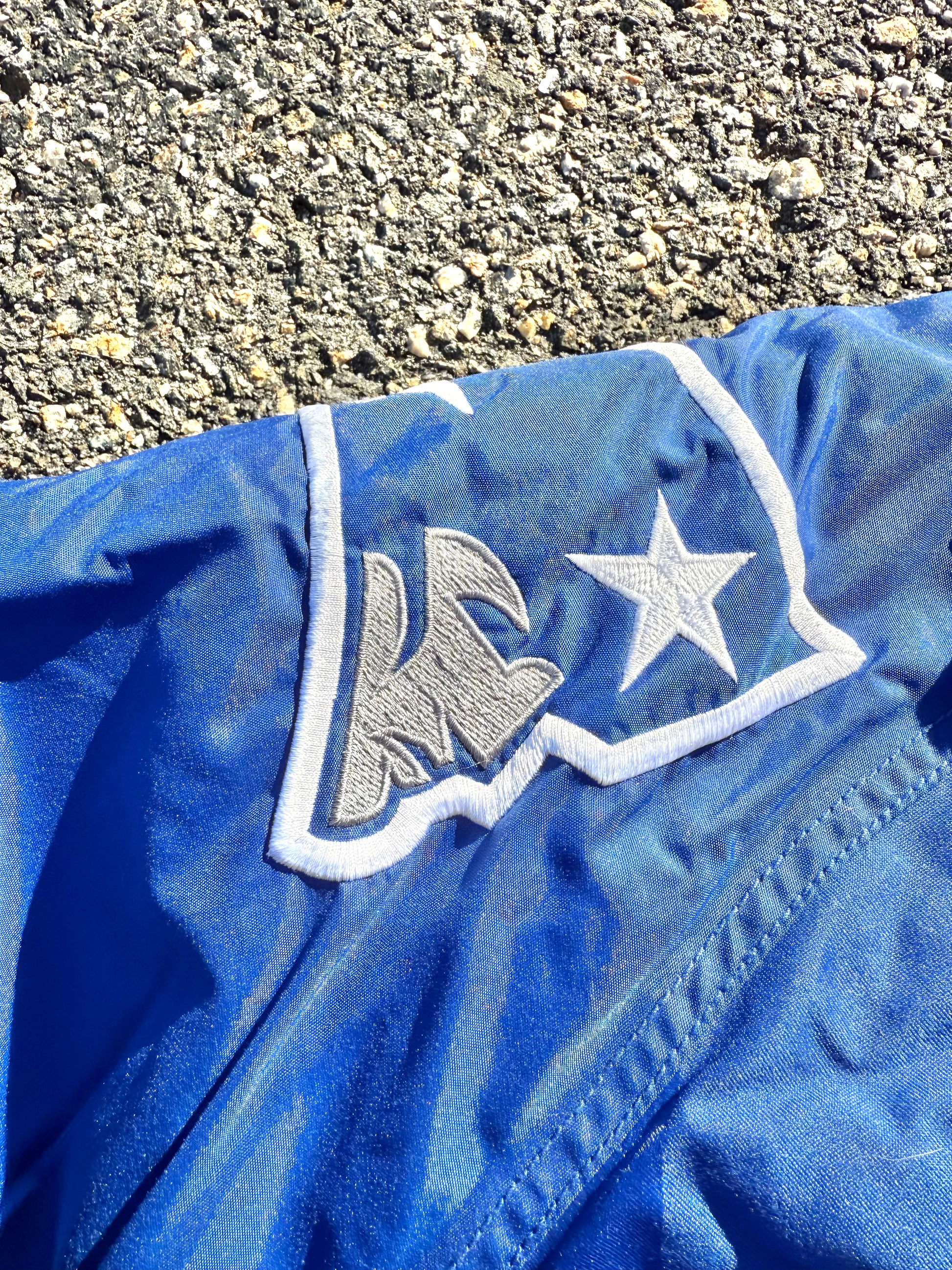Looks fantastic! EXCELLENT vintage condition with beautiful embroidered logos! Some light color bleeding on white spots but looks almost new! Just an amazing vintage Pats jacket!