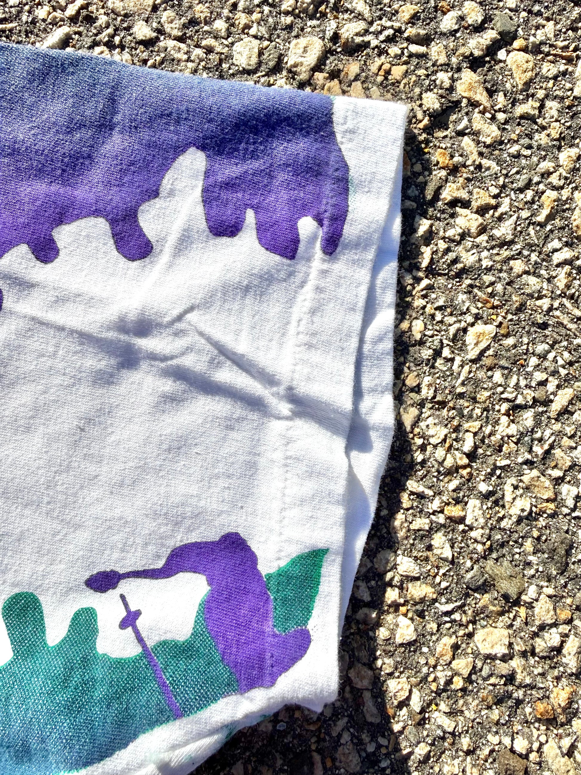 Excellent pre-owned vintage condition! Normal and very typical wear for a piece of this age but nothing noticeable and looks new! Single stitch and made in USA with the super cool all over print! Size tag is ONE SIZE but similar to XL, measurements are below for accuracy and guidance. Please see all photos for more condition details. Measurements (Flat lay) CHEST (Pit to Pit) - 23.5 inches FRONT LENGTH (Shoulder to waist) - 28 inches |