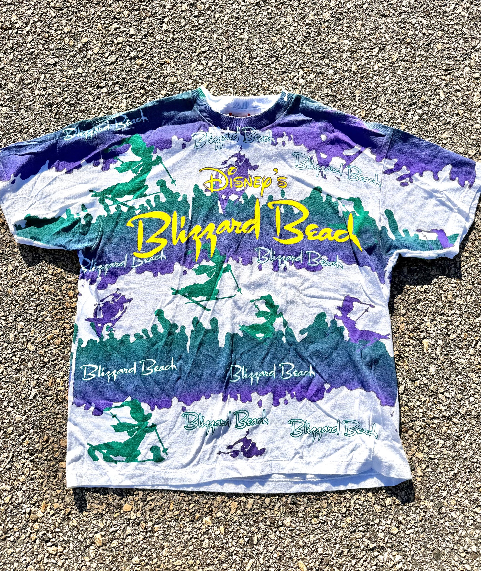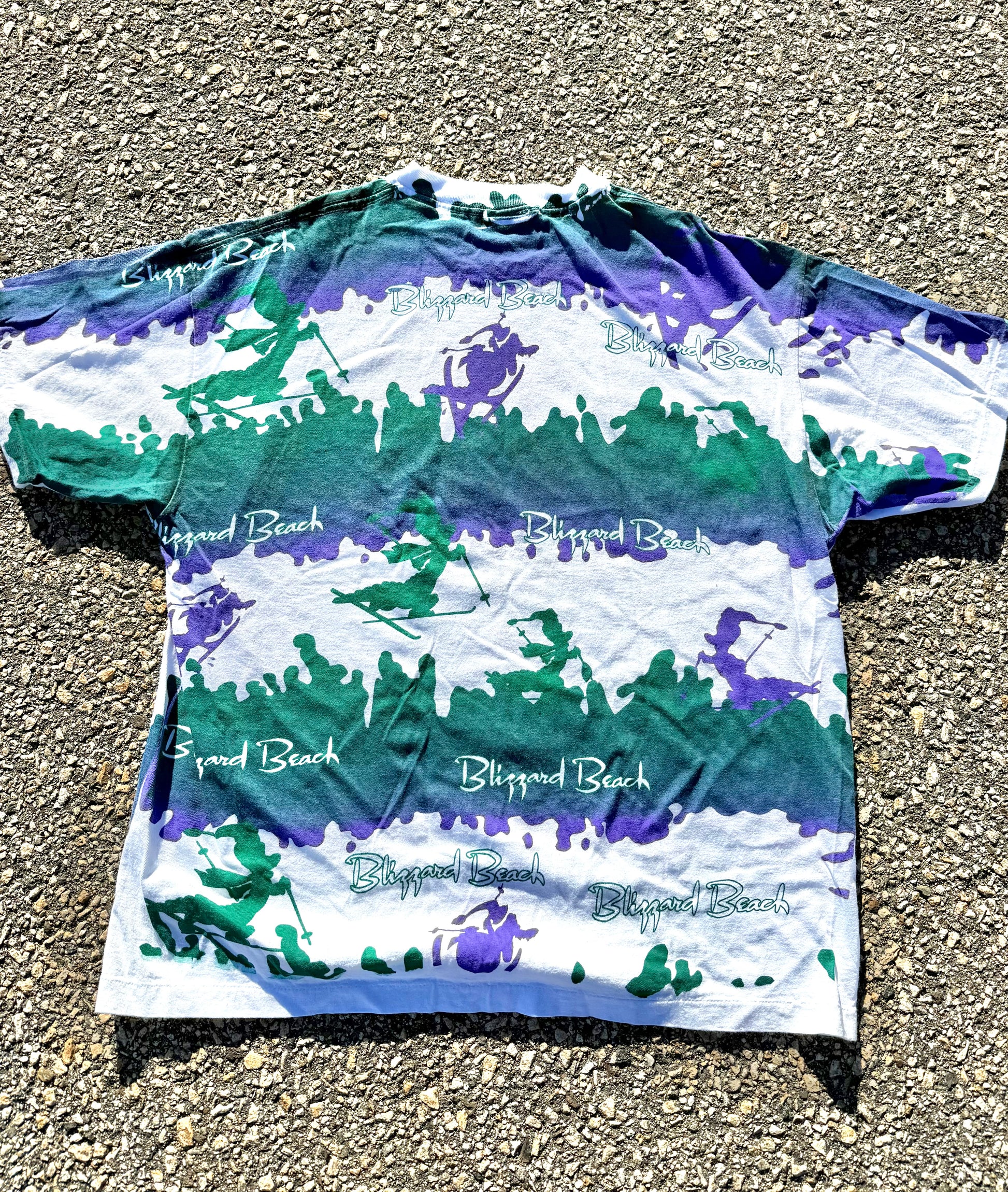 Vintage Disney 90's Crazy Blizzard Beach Gator AOP All Over Print T Shirt XL