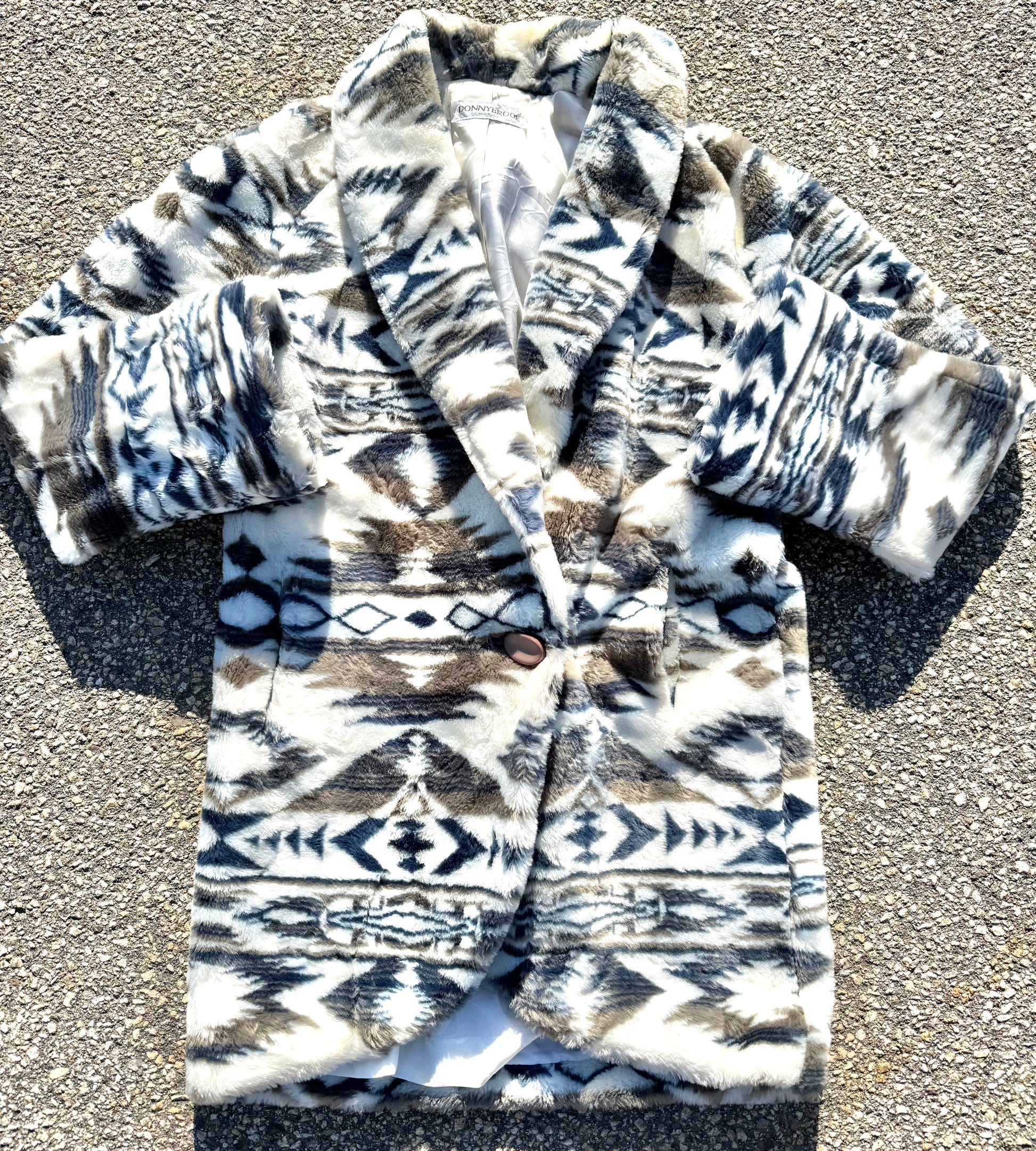Vintage Donnybrook Women's Faux Fur Aztec Southwestern Western Coat Jacket Size S Small