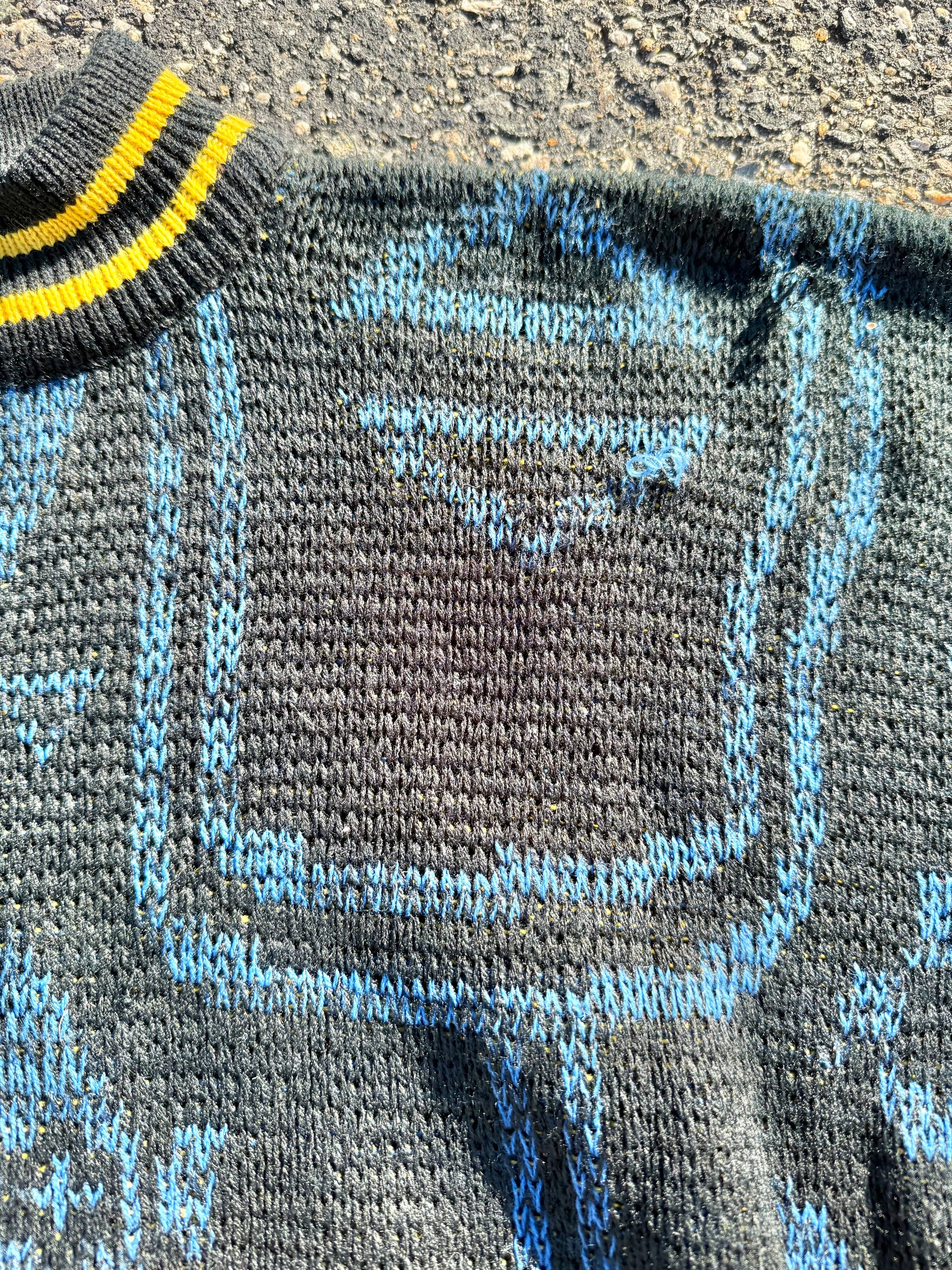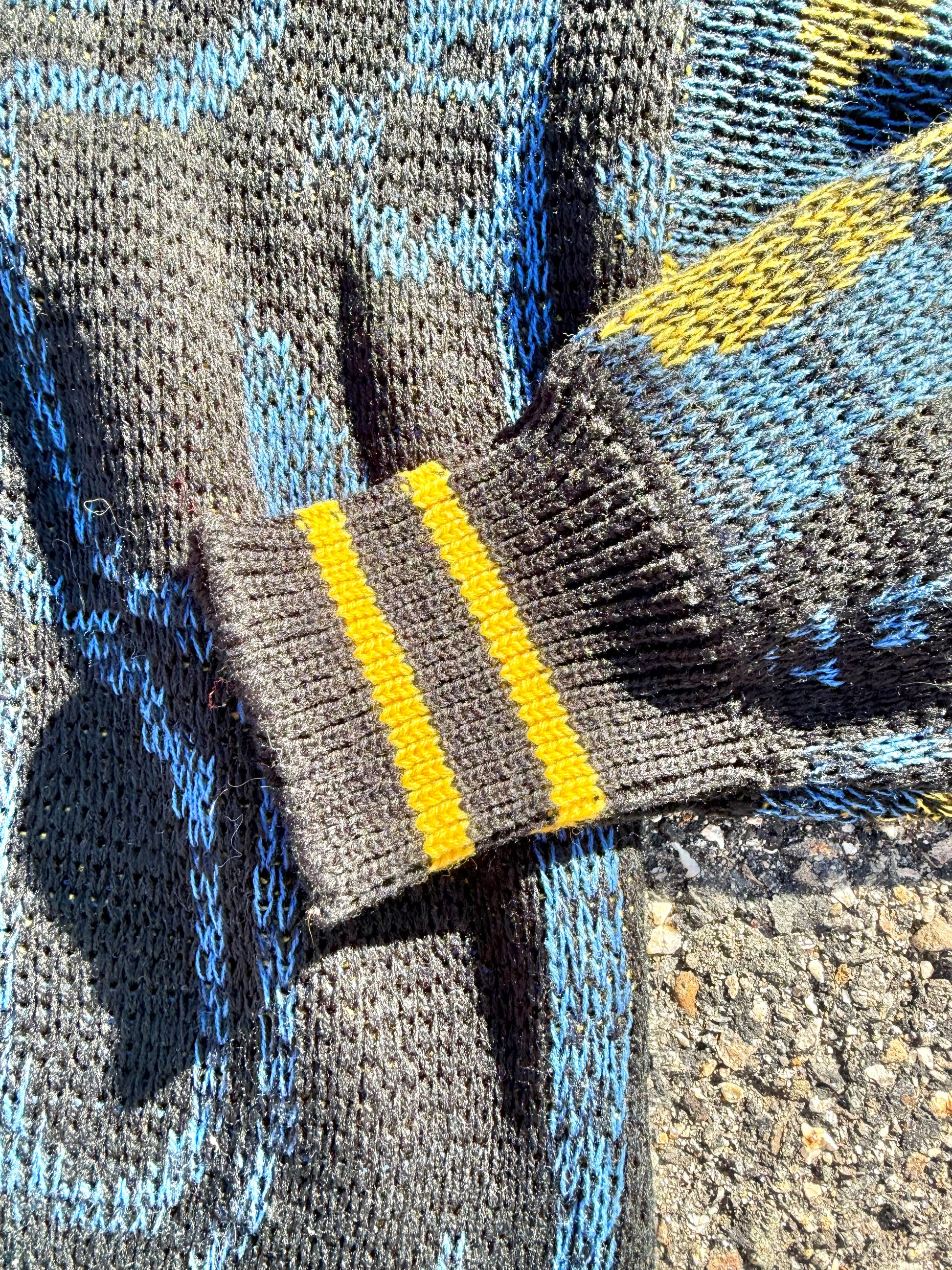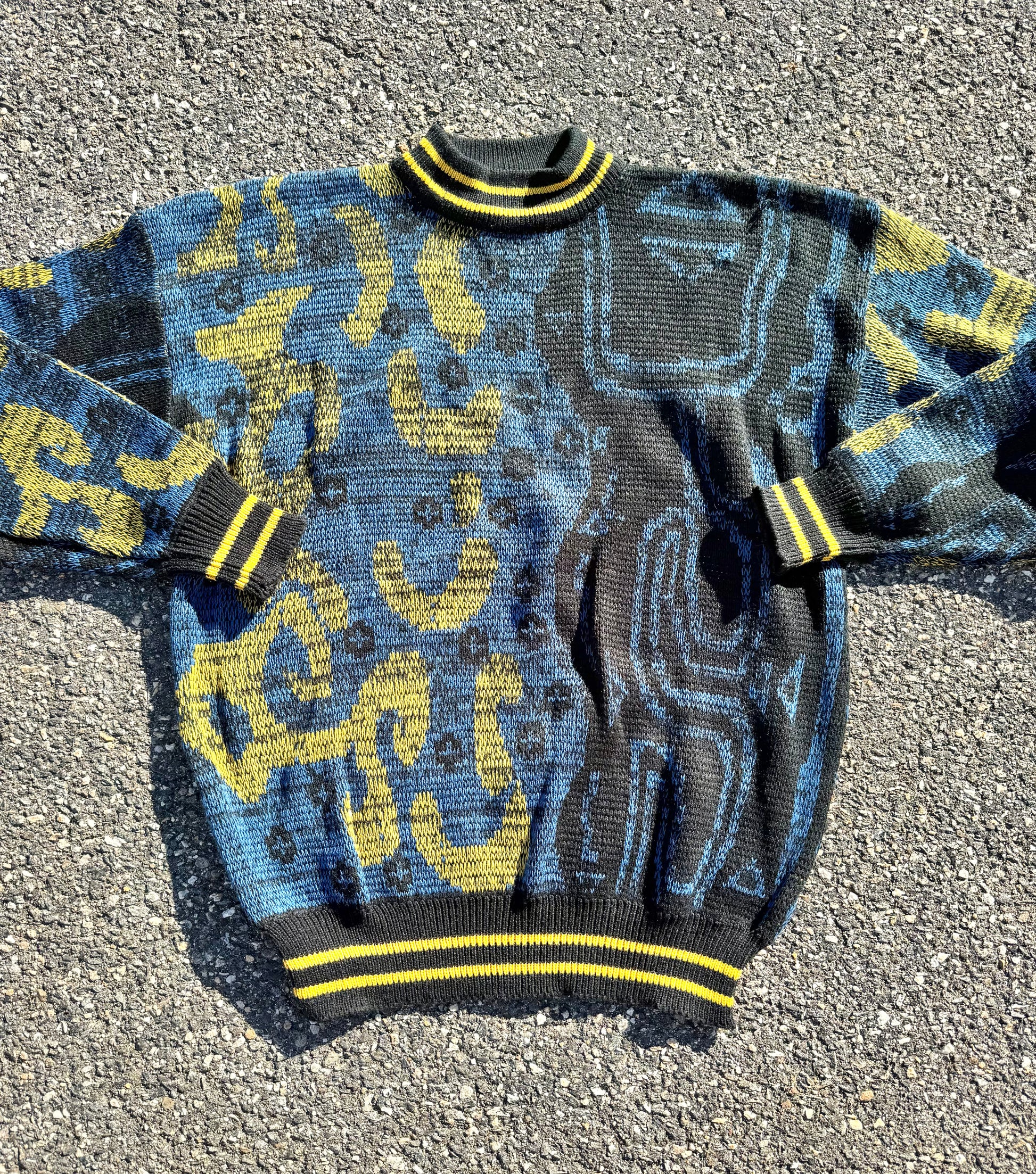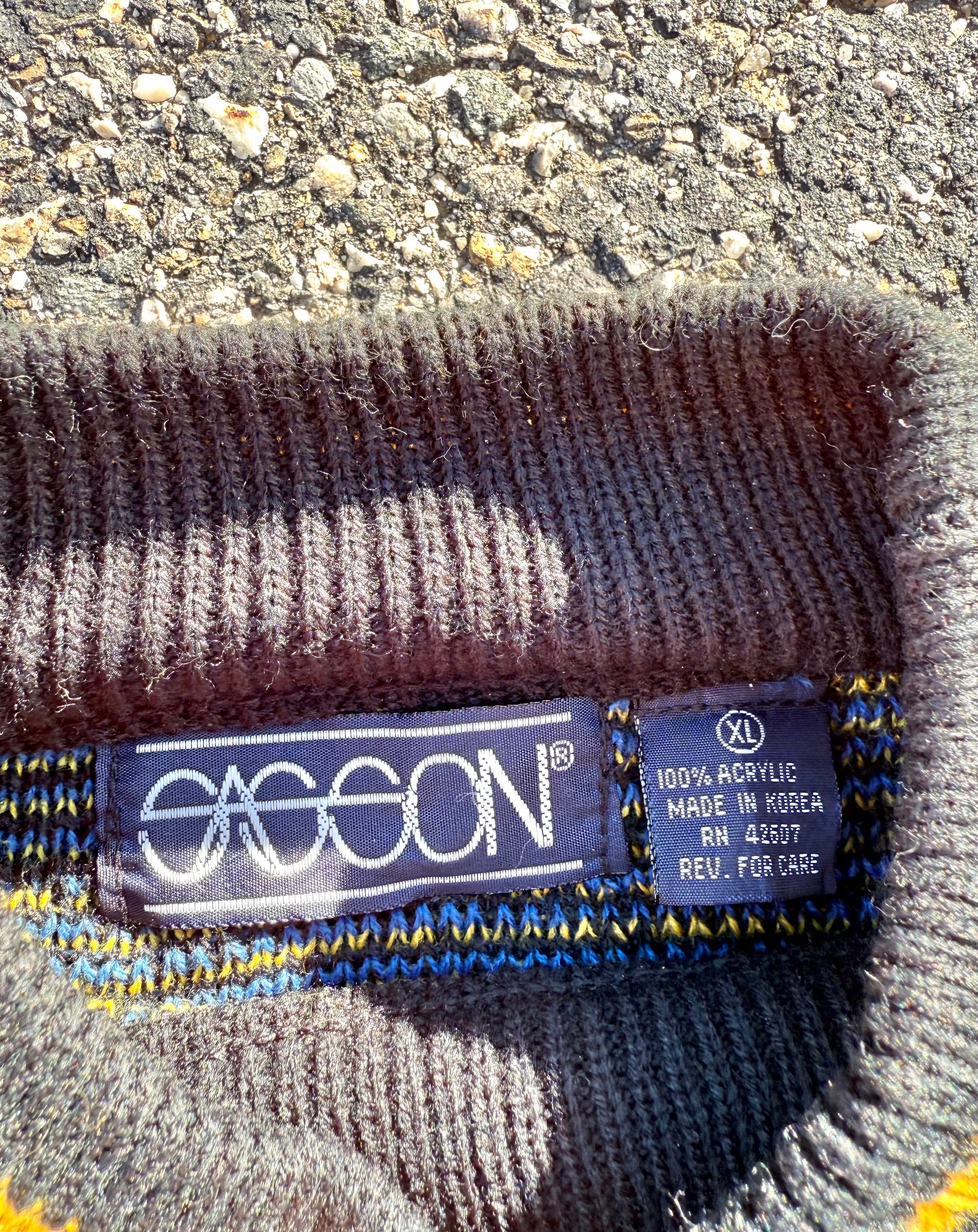 Vintage Sasson Crazy Print Coogi Style 80s Retro Knit Sweater Men's Size XL