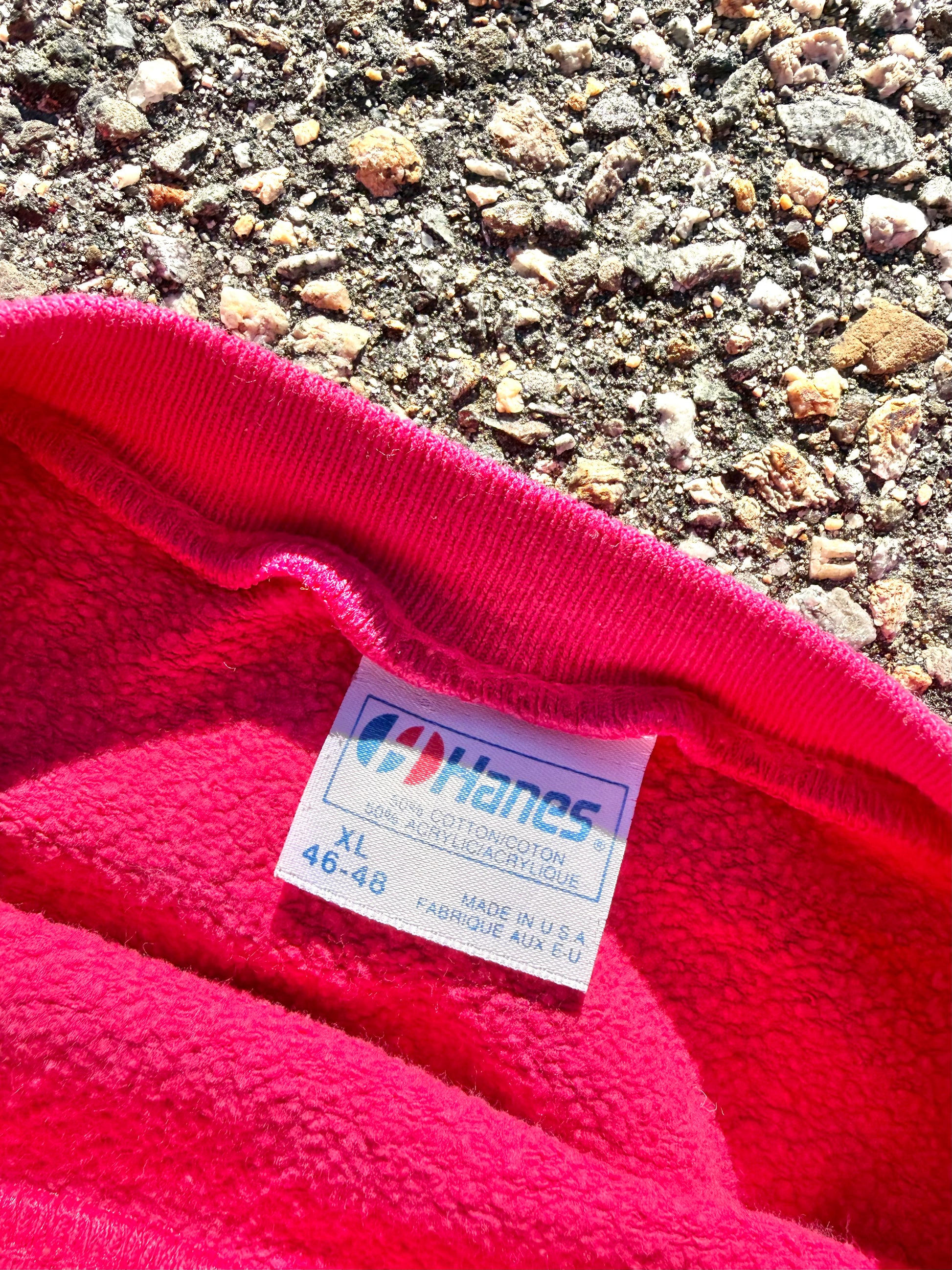 Great vintage condition! Awesome retro design! Normal and light vintage wear with that tiny hole and some fade but still looks awesome for a sweatshirt well over 30 years old! Just a great vintage piece! Please see all photos for more condition details. Size reads XL but more like a modern women's large. See measurements to compare. Measurements (Flat lay) CHEST (Pit to Pit) - 23 inches FRONT LENGTH (Shoulder to waist) - 26 inches |