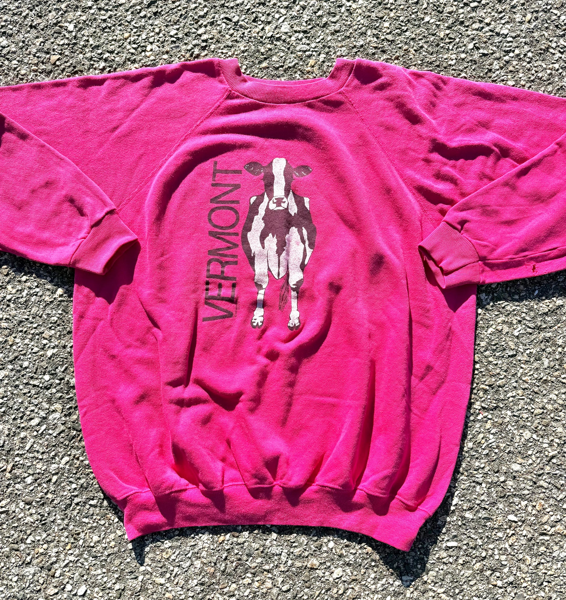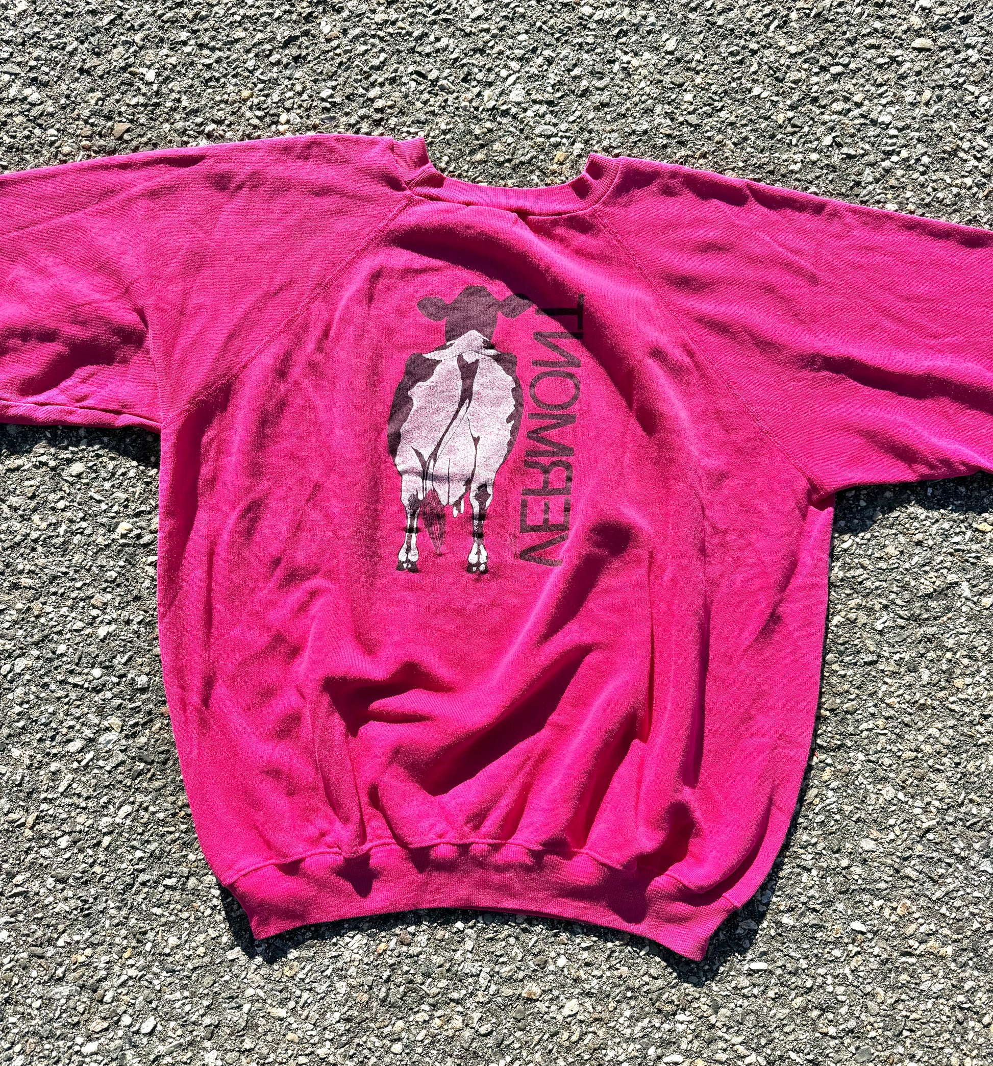 Vintage Vermont Ben Jerrys Cow Retro 80's Crewneck Sweatshirt Size L Large Pink